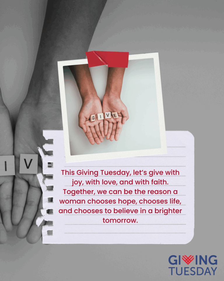 So, friend, will you join me this year? Let’s open our hearts and hands to women who are searching for hope. Let’s give so that every woman who comes through our doors knows she’s seen, valued, and loved, not just by us, but by the One who created her.